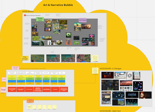 The game was designed collaboratively, and I focused on compiling documentation according to decisions made in the team Discord channel as well as creating visual mock-ups to work through user experience barriers. We utilized Google Suite and Miro to create our main documentation, which I organized and added to throughout the first week of development.